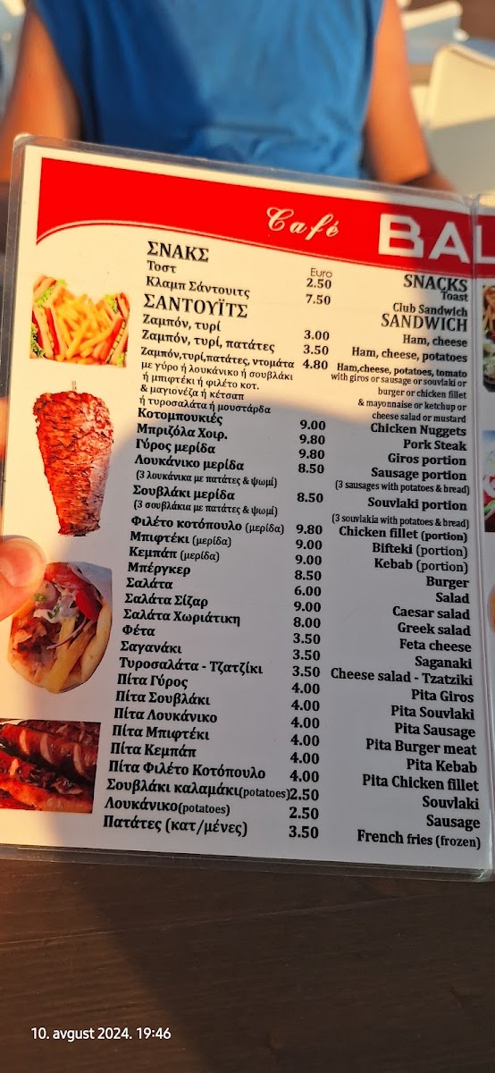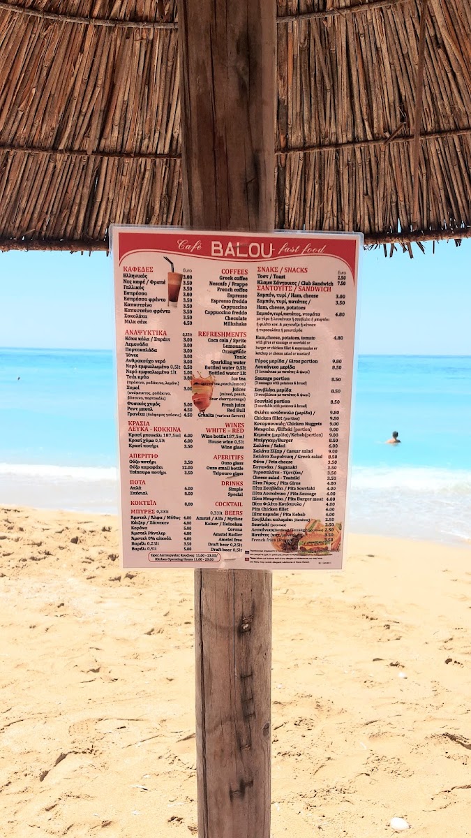 Balou Fast Food & Coffee Απολαύστε τον καφέ και το φαγητό σας δίπλα στην θάλασσα..! Menu